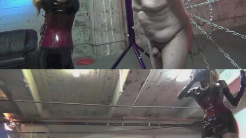 The slave has had several challenging days back to back in the dungeon and the fact he’s already mentally and physically exhausted doesn’t deter Mistress Lady Renee from giving him a beating that will not easily slip from his mind! She starts with a short single tail, biting into his back, before quickly moving on to longer more vicious whips. By the time the bullwhip appears, he’s almost totally drained, so it’s just as well she has him suspended from the bondage frame, so she can continue with the brutal whipping…