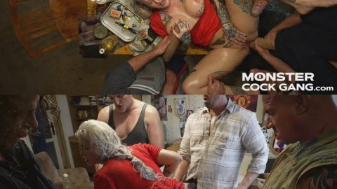 Krissy Lynn is horny at home. As her boyfriend comes down the staircase on his way to work, she stops him, takes his pants down, and starts sucking his cock. Afraid of being late to work, he tells her to stop and puts his dick away. He apologizes and suggests for her to masturbate. When she’s finally alone, Krissy grabs her laptop, gets on the internet and searches for four hung studs to come to her house to fuck her while she’s tied up in rope bondage.