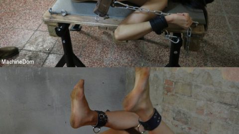 MACHINE DOM: Submissive Brunette Whore gets Machine Fucked