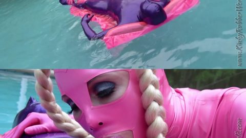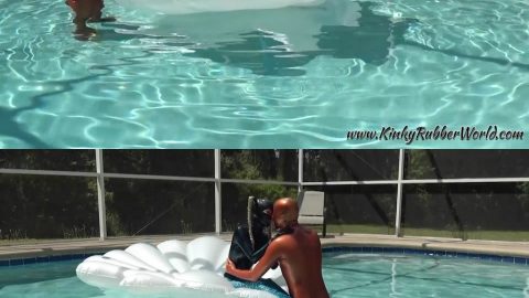 kinkyrubberworld Rubberjeff: Lara playing with Rubber_Jeff in Latex Blindmask on the Pool Float